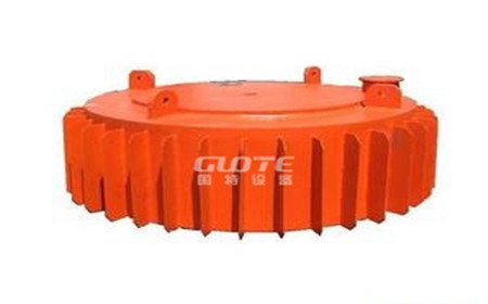 RCDB系列干式电磁除铁器(亦称PDC系列盘式、RCDY系列)是一种用于除去粉状或块状非磁性物料中杂铁的除铁装置。采用电工树脂浇注,自冷式全密封结构。具有透磁大、吸力强、防尘、防雨、耐腐蚀等特点,在恶劣的环境中仍能运行。 与CF、CFL系列悬挂式电磁除铁器通用。